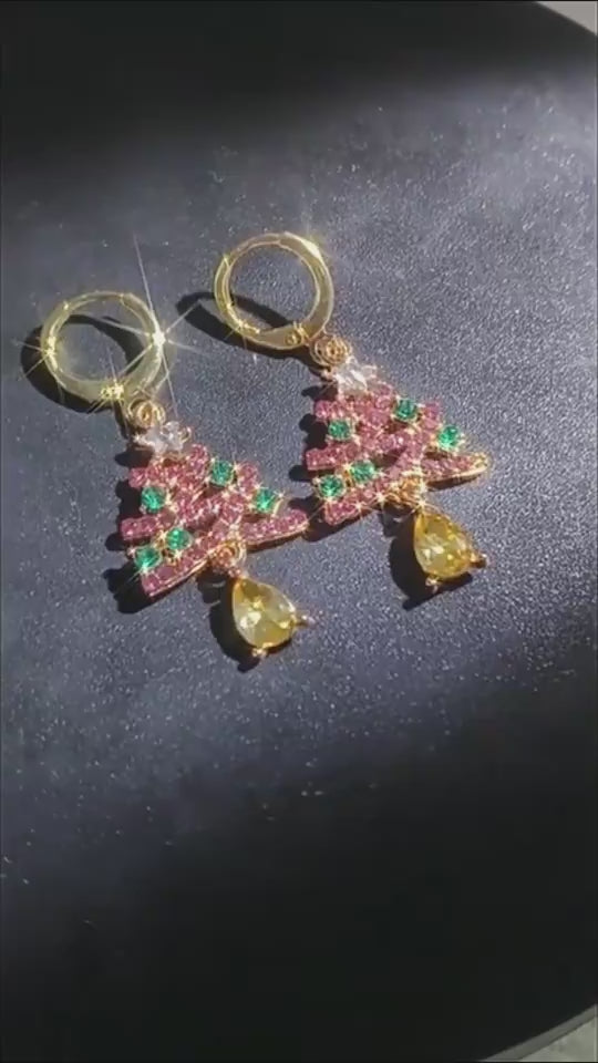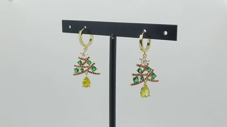 Celebrate modern holiday elegance with these Christmas tree dangle drop earrings adorned with multiple colored jewels. Their vibrant design captures the joyful spirit of the season while offering a chic twist on traditional motifs. Each pair is carefully crafted to provide a blend of contemporary style and irresistible festive charm.