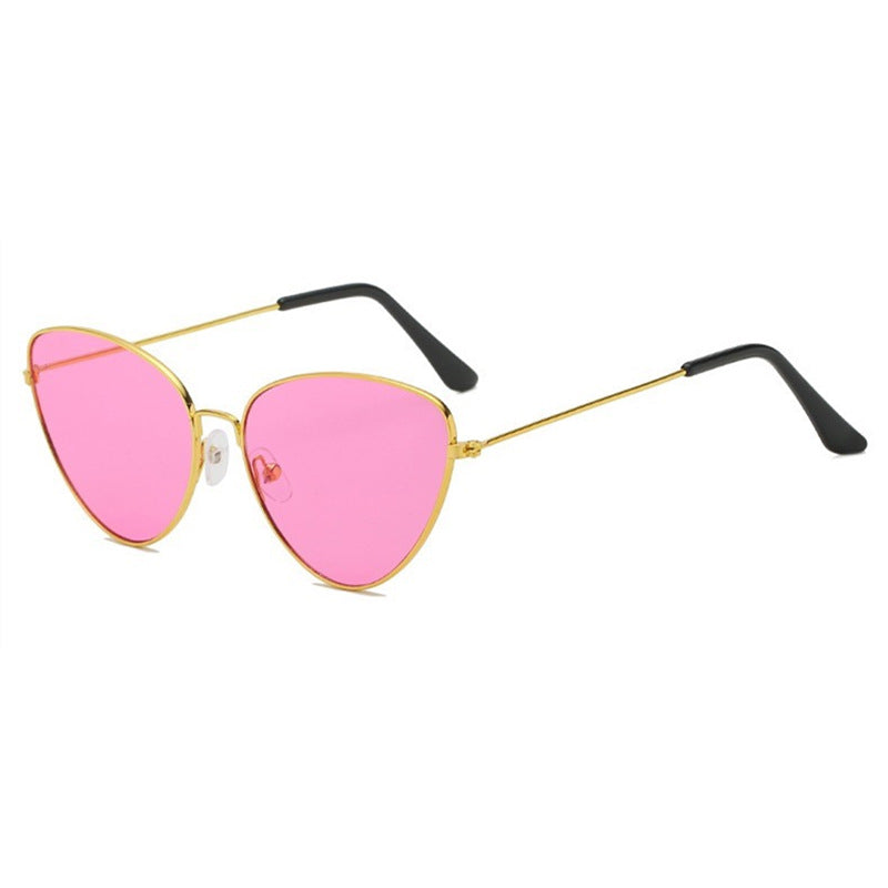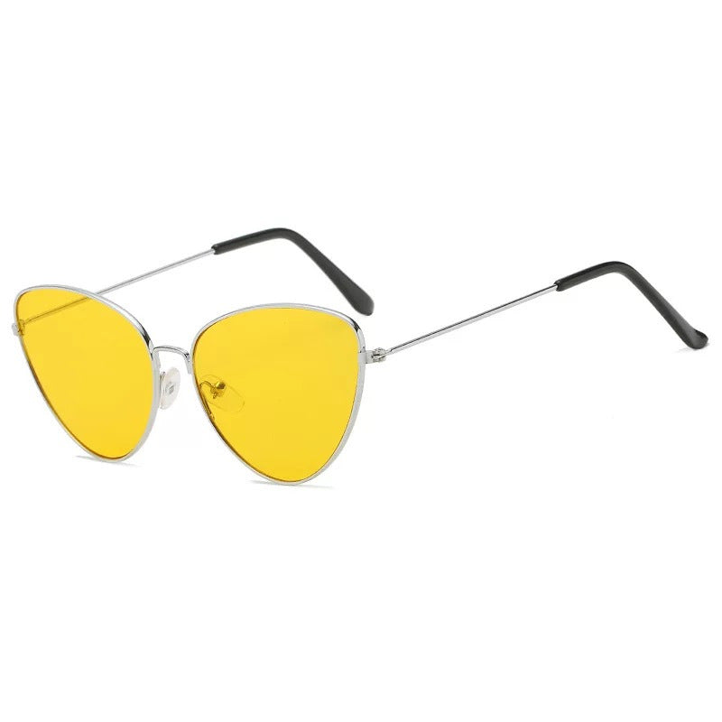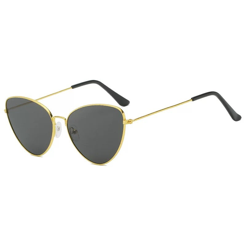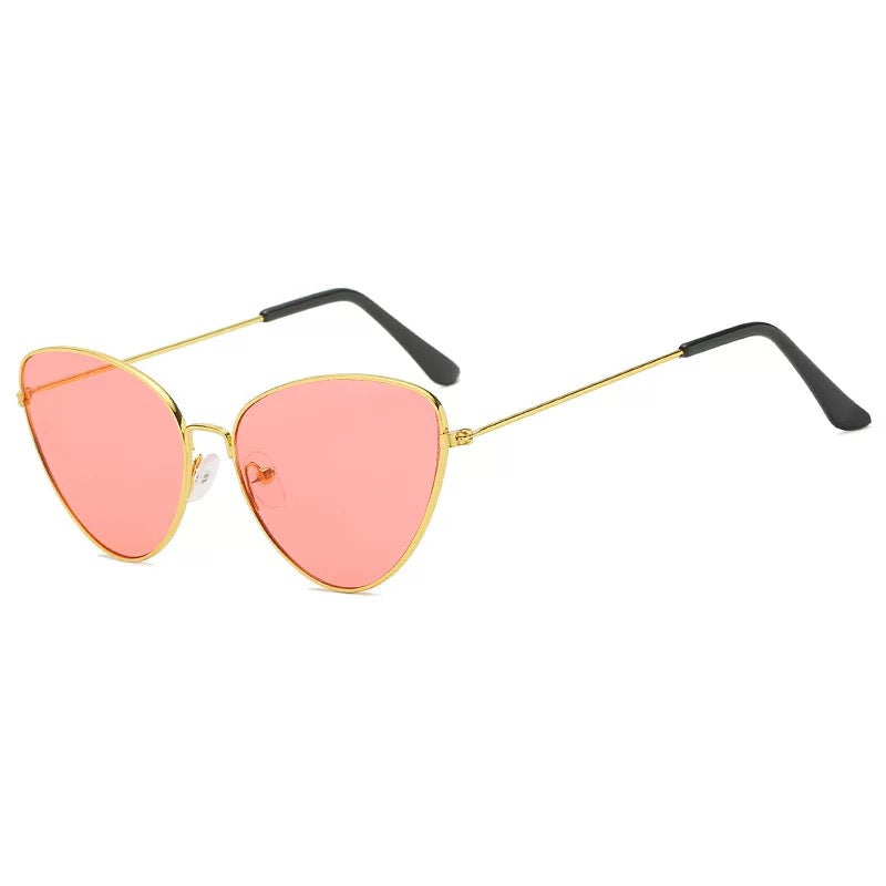 Sehen Sie trendig aus, egal was Sie tragen, wenn Sie es mit der dreieckigen modernen Katzenaugen-Sonnenbrille kombinieren, die einen dünnen goldfarbenen Metallrahmen aufweist, der sich in den Farben Ihrer Wahl um die Gläser wickelt.