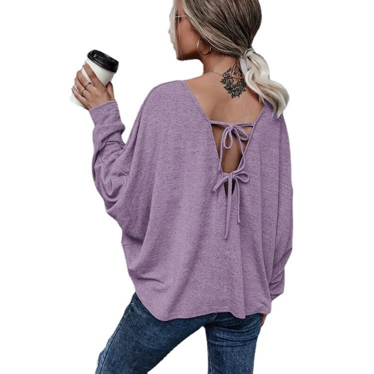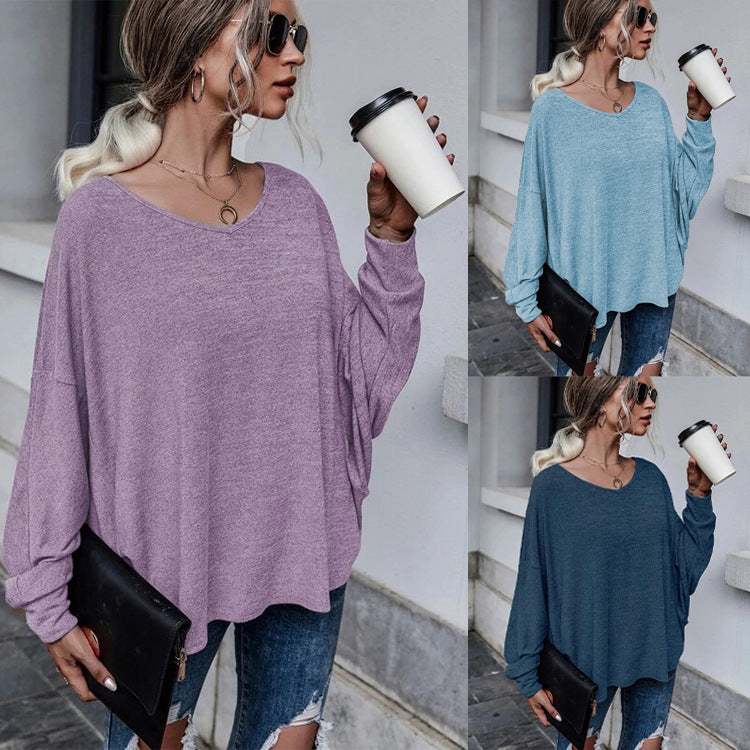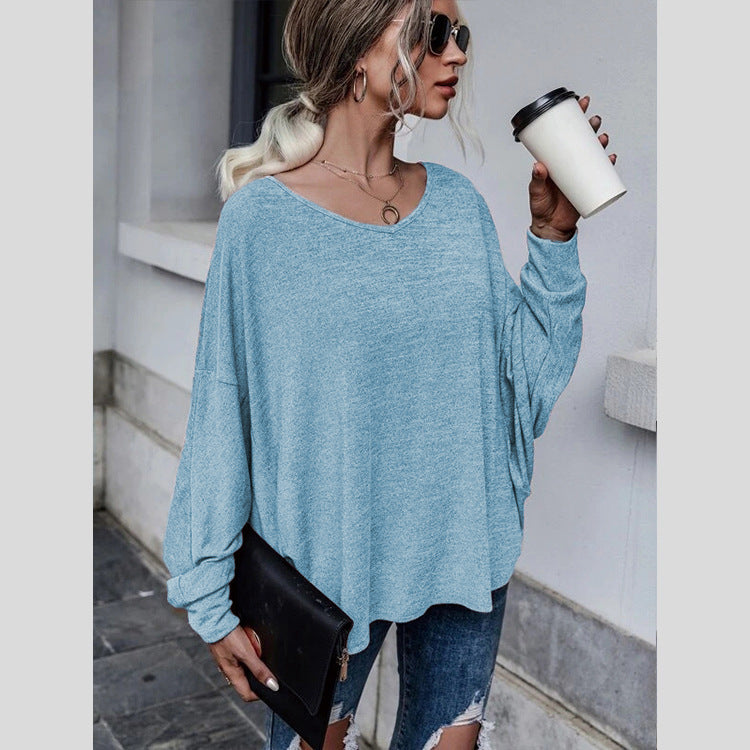 Locker sitzendes, langärmliges, leichtes Top mit O-Ausschnitt