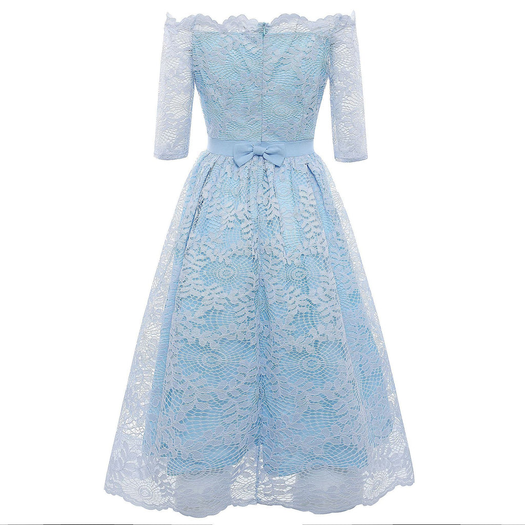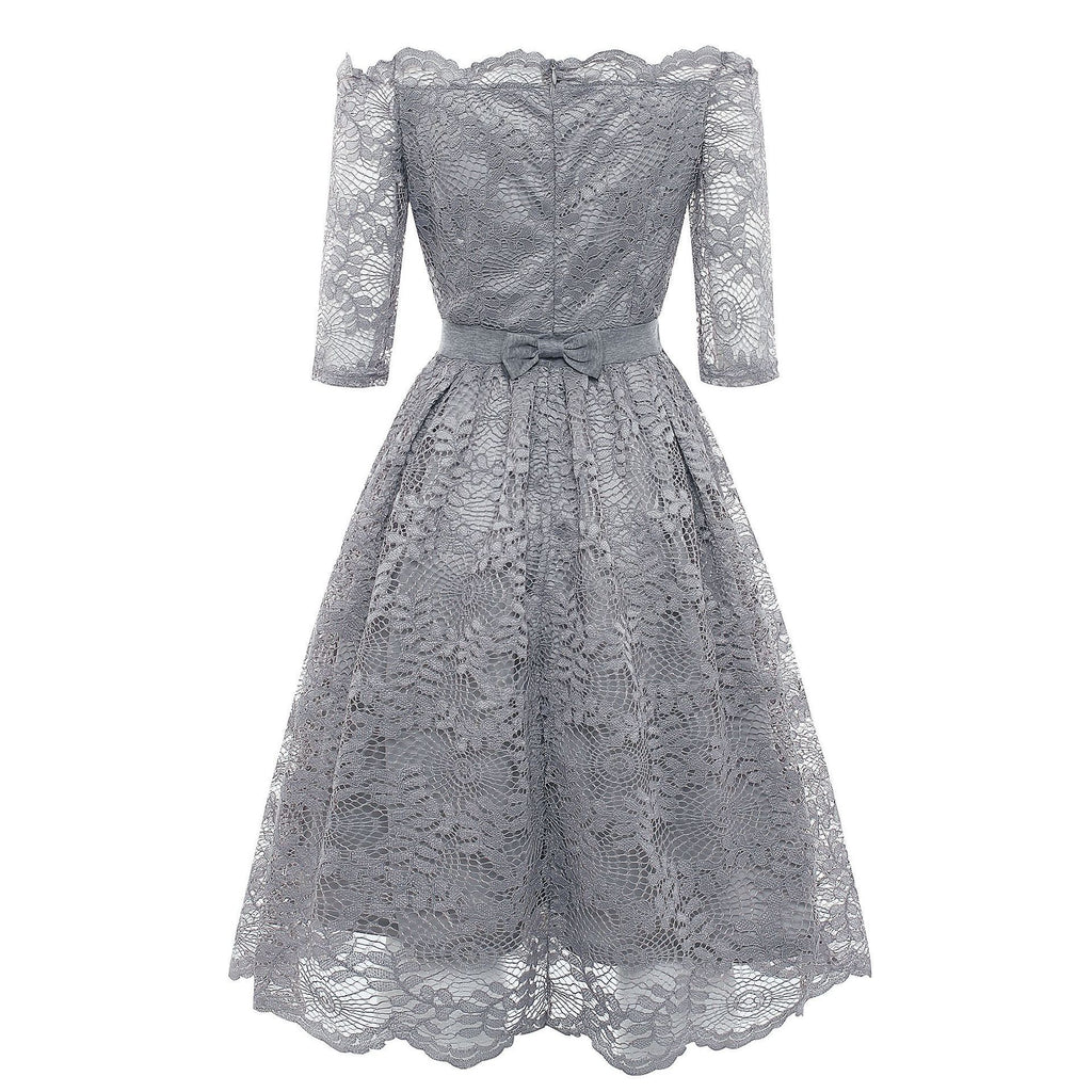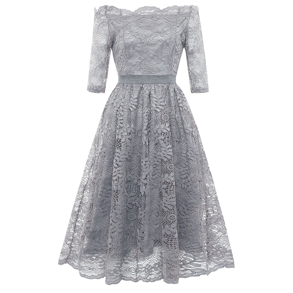 Bedecken Sie sich von oben bis unten mit Spitze mit diesem schulterfreien Kleid mit Spitzensaum, dreiviertellangen Ärmeln und einem eckigen Ausschnitt.