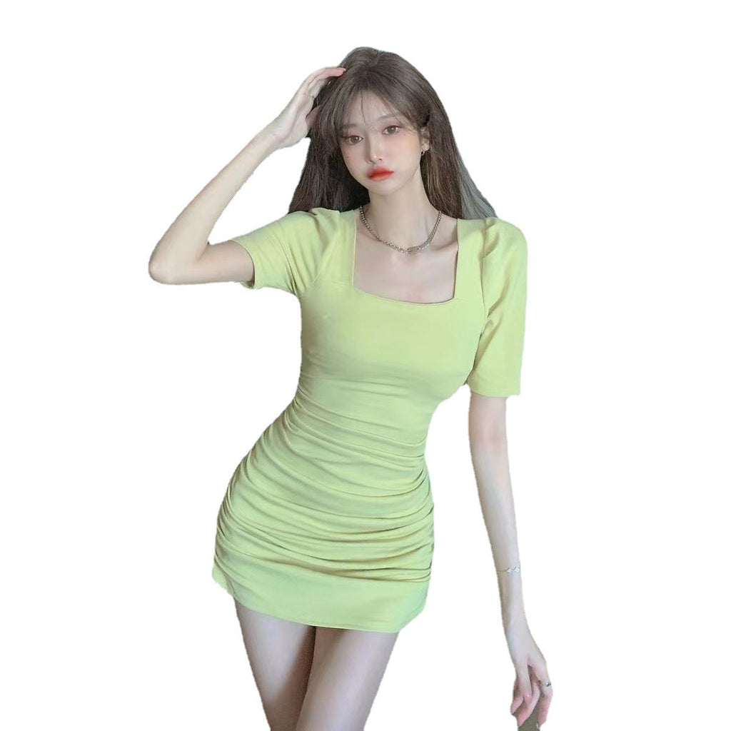 Puff-Ärmeln Korsettkleid mit quadratischer Kragen und Falten Taille