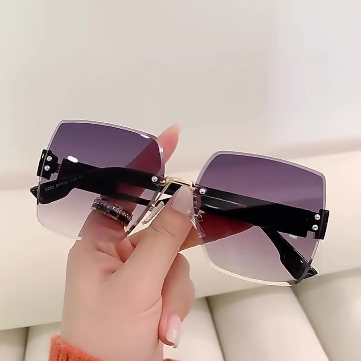 Quadratische, übergroße, rahmenlose, lässige Sonnenbrille