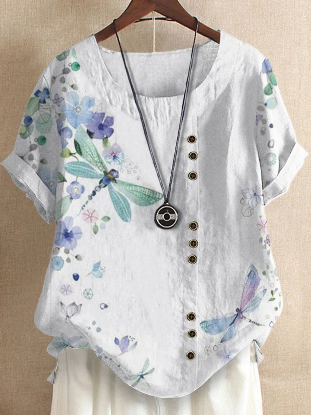 Suchen Sie nach einem lässigen Look, den Sie so ziemlich überall tragen können? Suchen Sie nicht weiter! Dies ist das ultimative Kleidungsstück für diejenigen, die sich gerne lässig kleiden, aber dennoch gepflegt aussehen möchten. Dieses Shirt ist aus hochwertigen Materialien gefertigt und super weich, Sie werden sich darin wohl fühlen. Mit modischen und einzigartigen Designs lässt es sich leicht mit Hosen oder Röcken kombinieren. Sie können dieses T-Shirt zu jeder Gelegenheit im täglichen Leben oder für einen besonderen Abend tragen. Das intelligente Druckmusterdesign lässt Sie stilvoll aussehen, aber nicht auffällig. Dieses Shirt ist ein Must-Have für Ihren Kleiderschrank! Kombiniere es mit einem Jeansrock und flachen Sandalen für Drinks am Wochenende oder trage es mit einem hoch taillierten Bleistiftrock zur Arbeit.