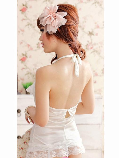 Rüschen und Spitze kommen zusammen, um zu verblüffen! Inklusive Neckholder-Teddy, passendem G-String und Spitzentop Strümpfe, dieses All-in-One-Set ist sexy und süß