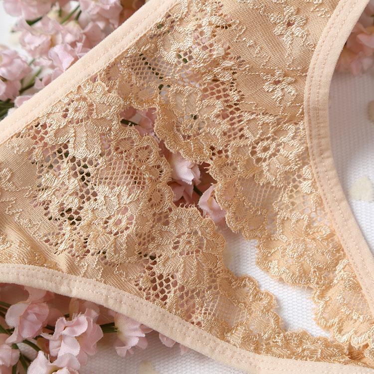 Geben Sie Ihrem Geliebten etwas, worauf er sich freuen kann, wenn er Sie in diesem Tanga-Höschen ohne Schritt mit zwei Trägern mit Spitzenseiten und einem ouvert-Design sieht.