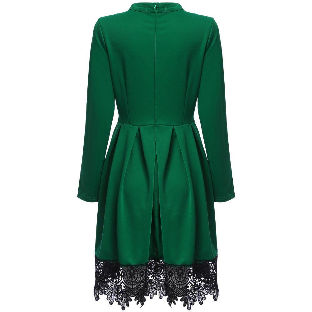 Smaragdgrünes Kleid mit Spitzensaum und Stehkragen