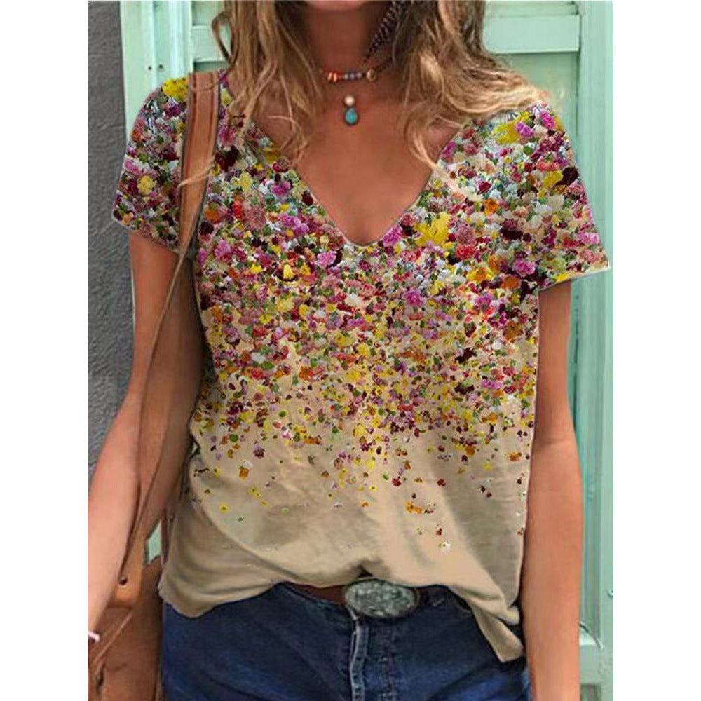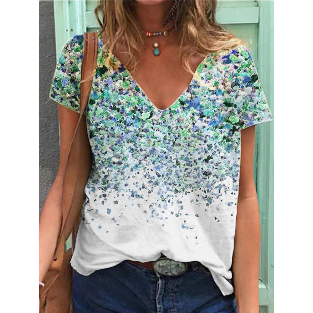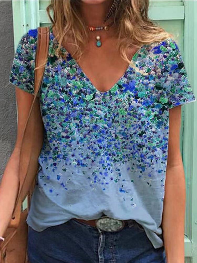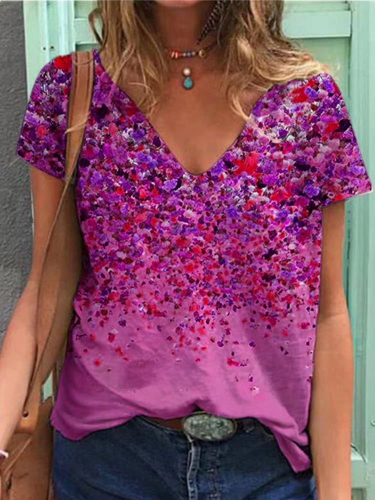 Ziehen Sie die Aufmerksamkeit der Passanten auf sich, indem Sie dieses kurzärmlige Oberteil mit funkelnden Lichtern der Stadt tragen. Mit einem funkelnden, farbenfrohen, von Pailletten inspirierten Muster, das unten in die einfarbige Farbe übergeht, wird dieses Oberteil mit Sicherheit die Aufmerksamkeit aller auf sich ziehen.