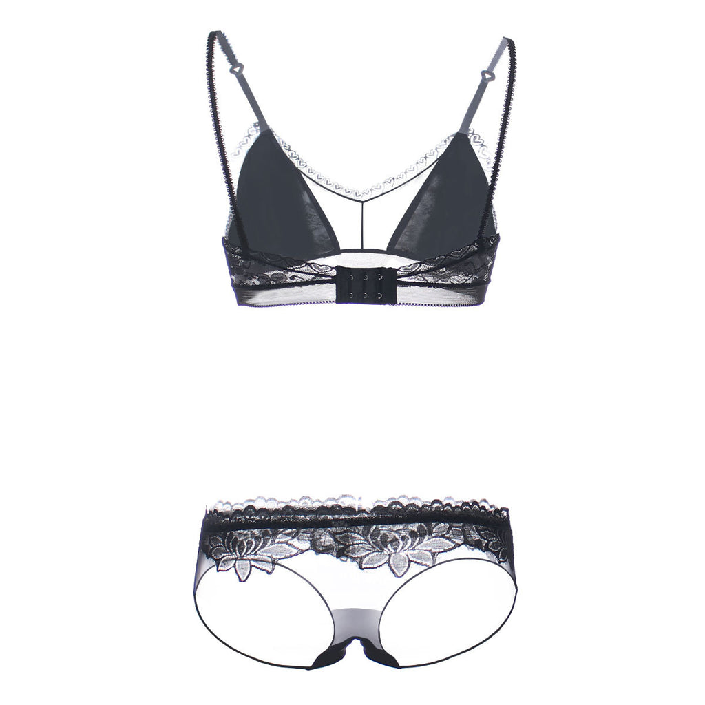 Überlassen Sie wenig der Fantasie in dem klassischen, wunderschönen Spitzen-T-Strap-BH und Hiphugger-Set, komplett mit einem halbtransparenten BH und einem durchscheinenden Höschen.