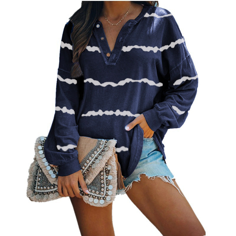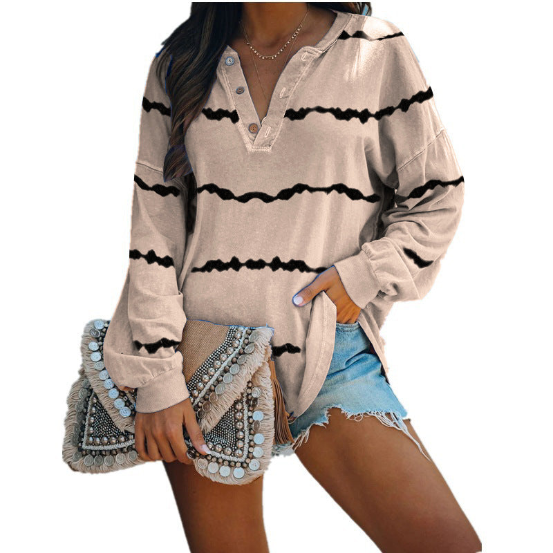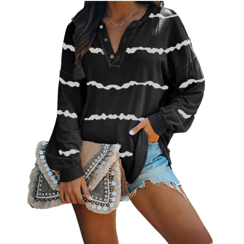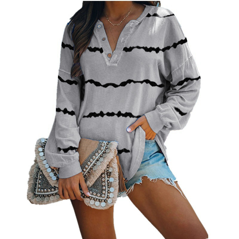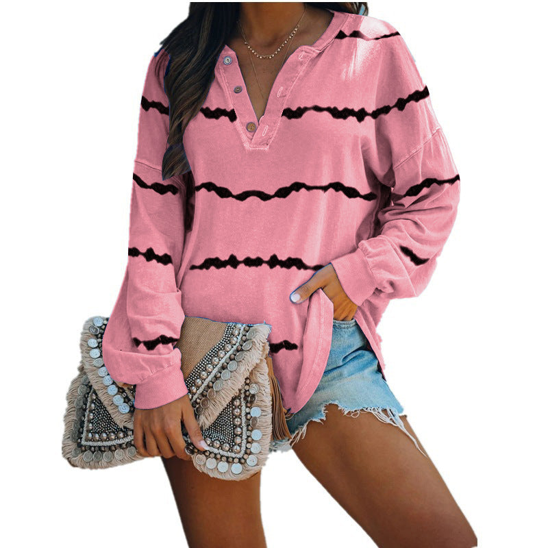 Gestreiftes, locker sitzendes Top mit V-Ausschnitt und Knöpfen