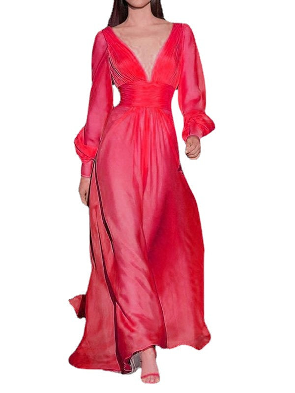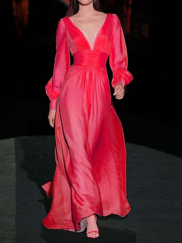 Wenn Sie das A-Linien-Kleid mit V-Ausschnitt und Taille für Damen mit langen Ärmeln tragen, werden Sie sicher auffallen, wenn nicht wegen der schmeichelhaften Passform, sondern wegen der leuchtenden Farboptionen von entweder sonnigem Gelb oder Rosa.