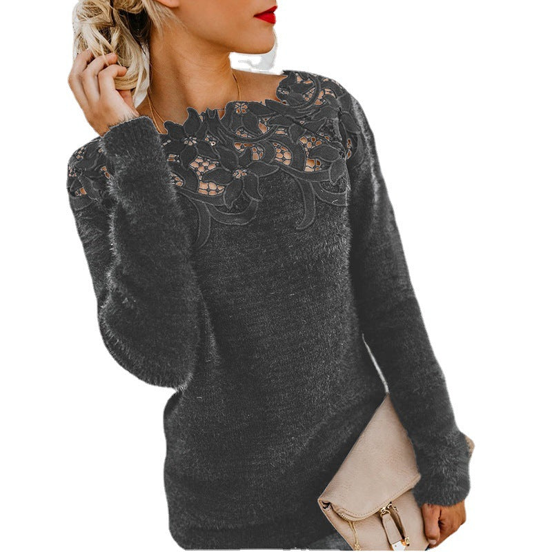 Verleihen Sie Ihrem Stil sowohl optisch als auch haptisch etwas Weichheit mit dem Women's Soft Sweater with Lace Chest. Es hat einen Ausschnitt, der hoch über den Schlüsselbeinen verläuft, um ihm eine visuelle Faszination zu verleihen.