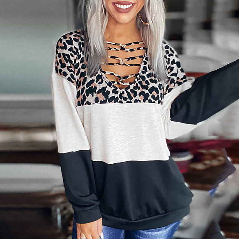 Machen Sie einen Spaziergang auf der wilden Seite in Ihrer Freizeitkleidung und tragen Sie die weiß-schwarze Damenbluse mit Leopardenmuster auf der Brust, die einen V-Ausschnitt mit durchgehenden Trägern aufweist.