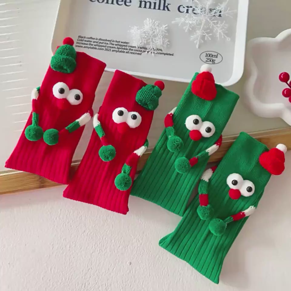 Whimsical Googly Eye 3D Christmas Socks in Red and Green for Kids