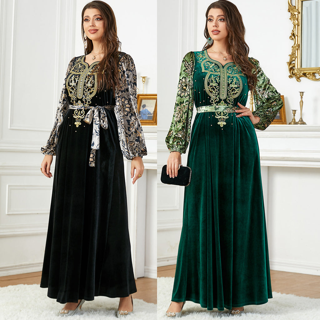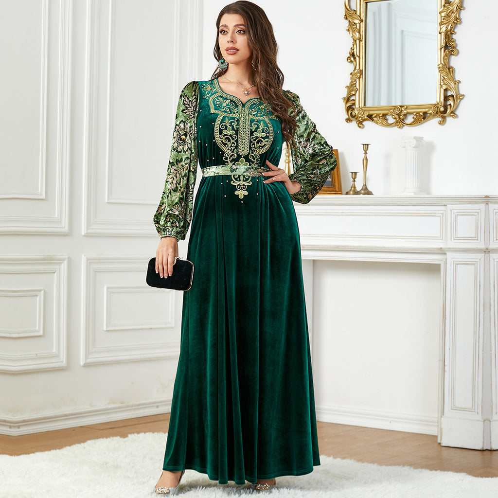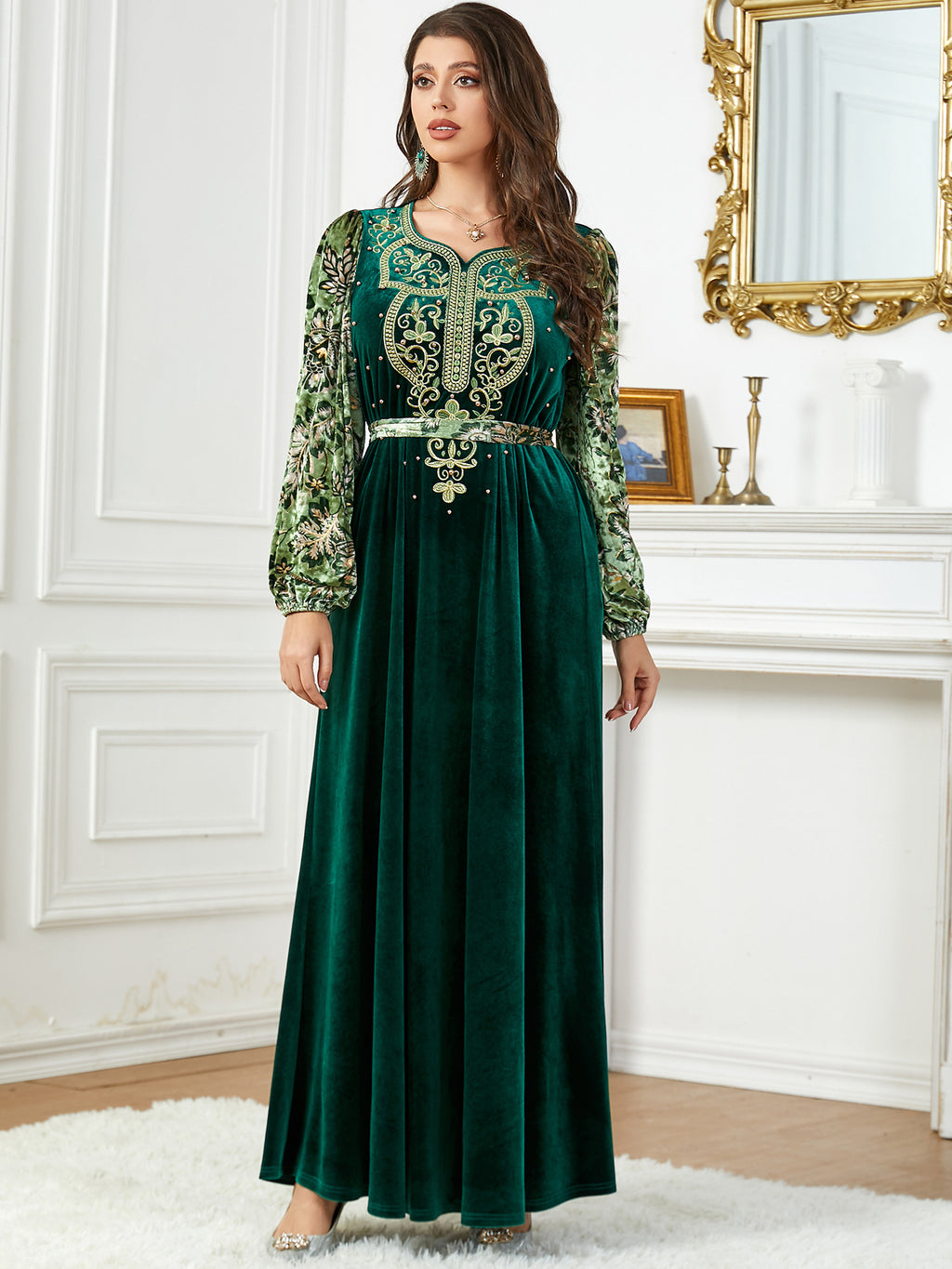 Women's Bishop Sleeve Maxi Dress with Golden Details