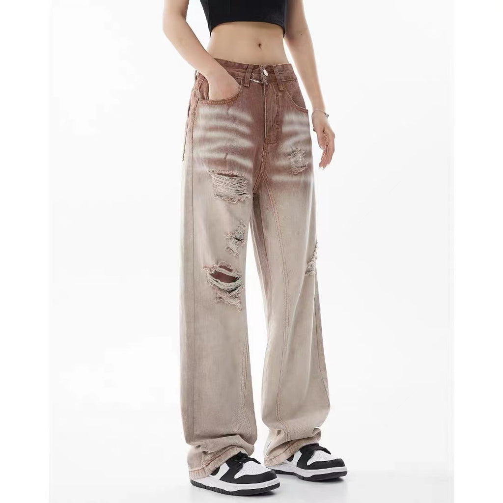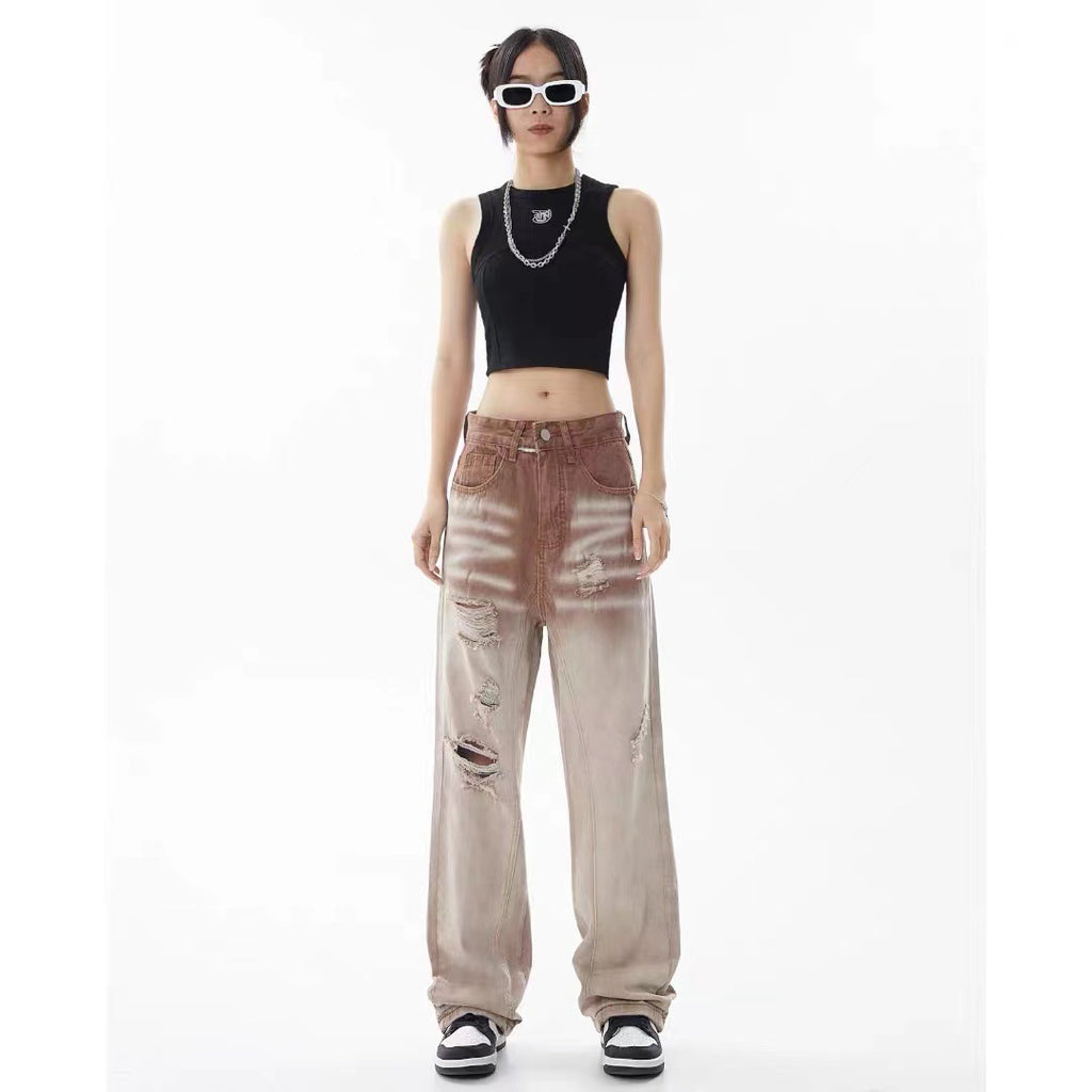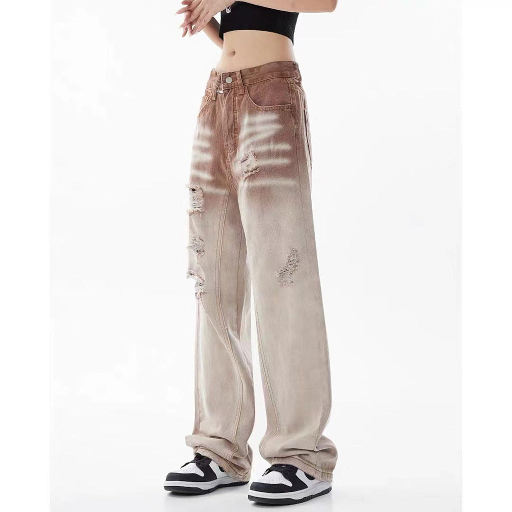 Recapture the trends of the early 2000s wearing the Women’s High Waist Wide Leg Flair Denim that features an acid-washed color scheme and zigzag details.