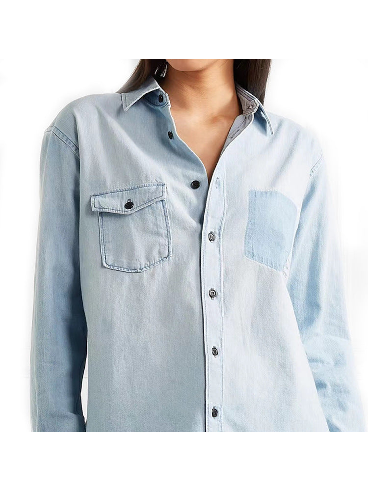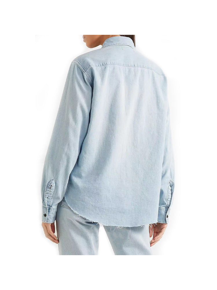 Women’s Light Blue Denim Long Sleeve Shirt