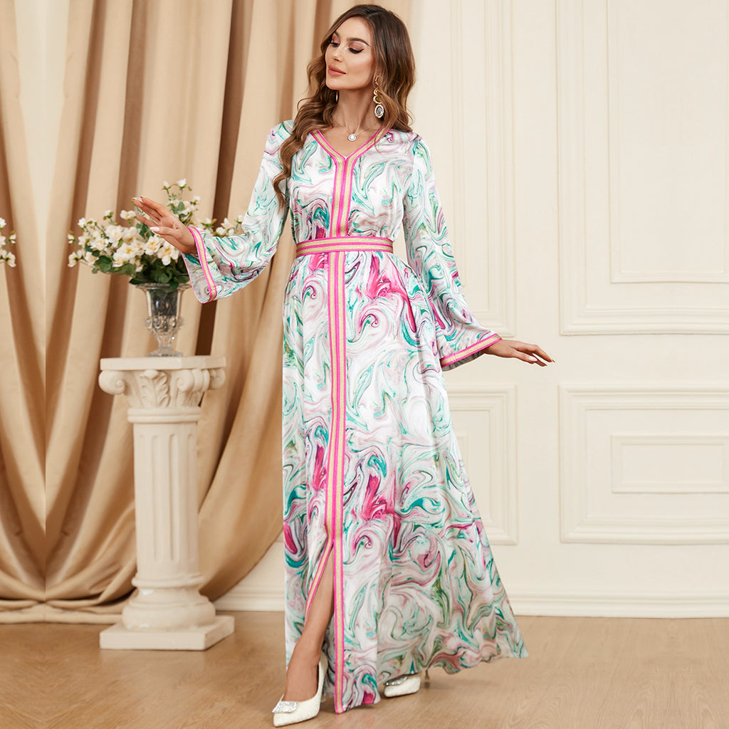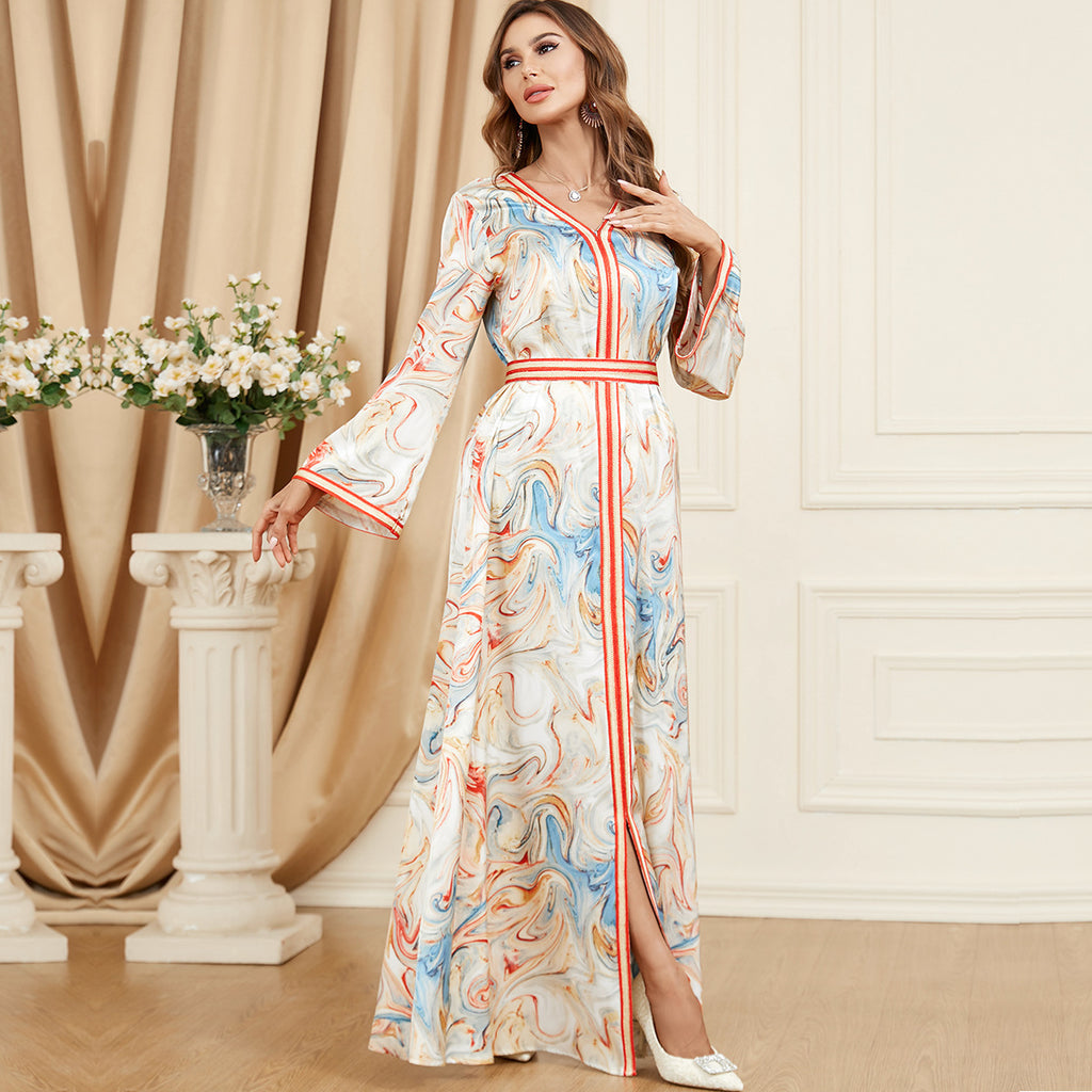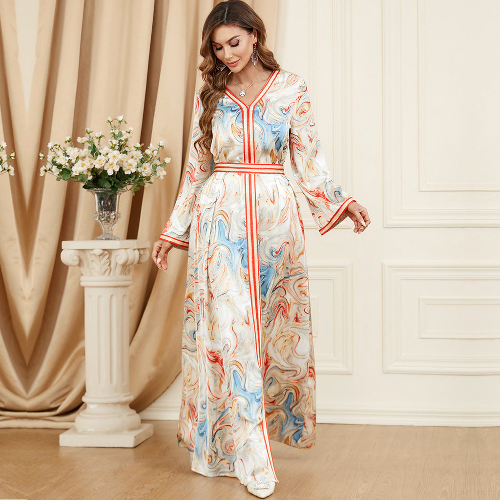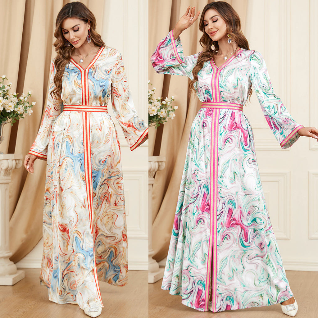 Women's Long Sleeve Paint Swirl Maxi Dress