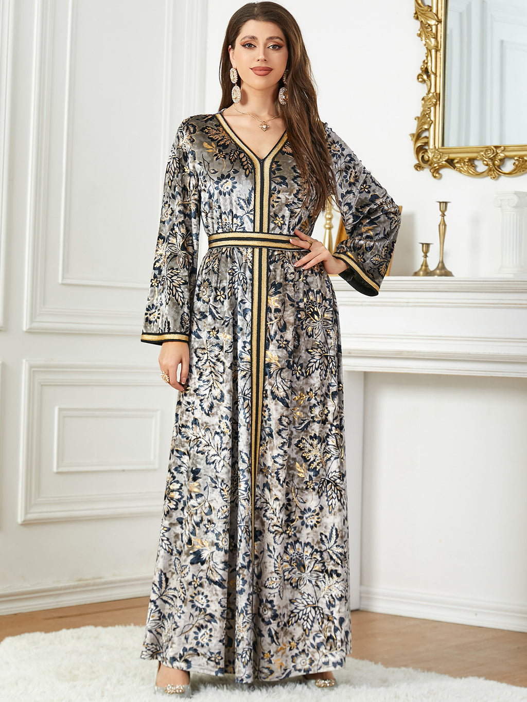 Women's Long Sleeve SIlky Maxi Dress with Floral Details