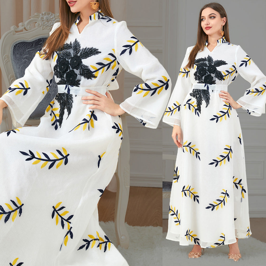 Women's Mock Neck Long Sleeve Botanical Print Maxi Dress
