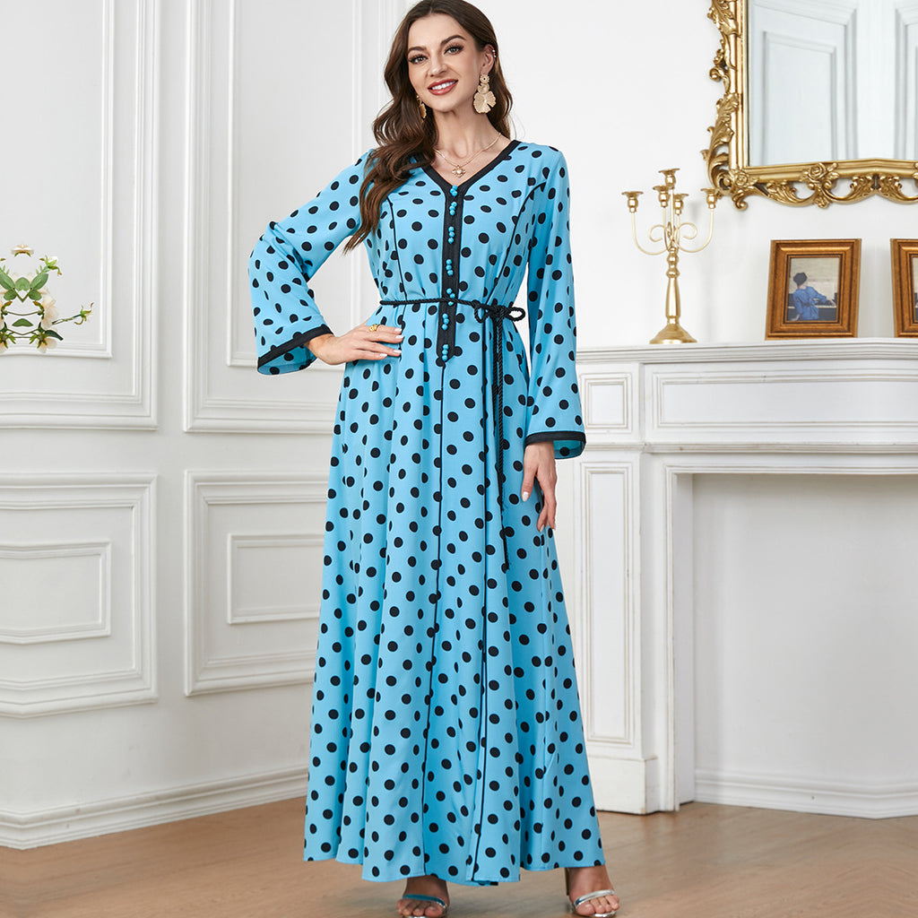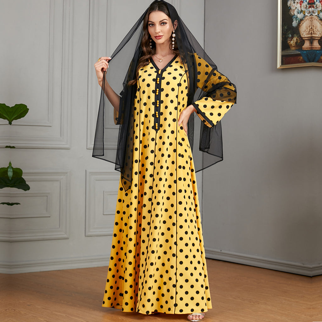 Women's Pale Yellow Maxi Dress with Black Polka Dots