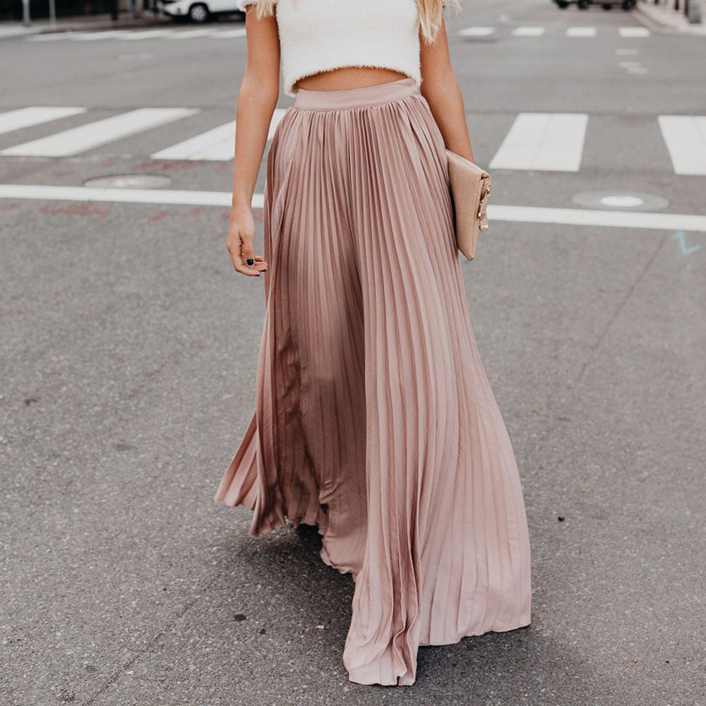 Bring elegance to any semi-casual ensemble wearing the Women's Long Pleated High Waist Maxi Skirt that features rich texturing and comes in three eye-catching hues.