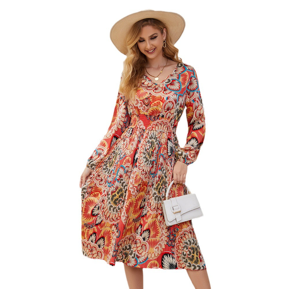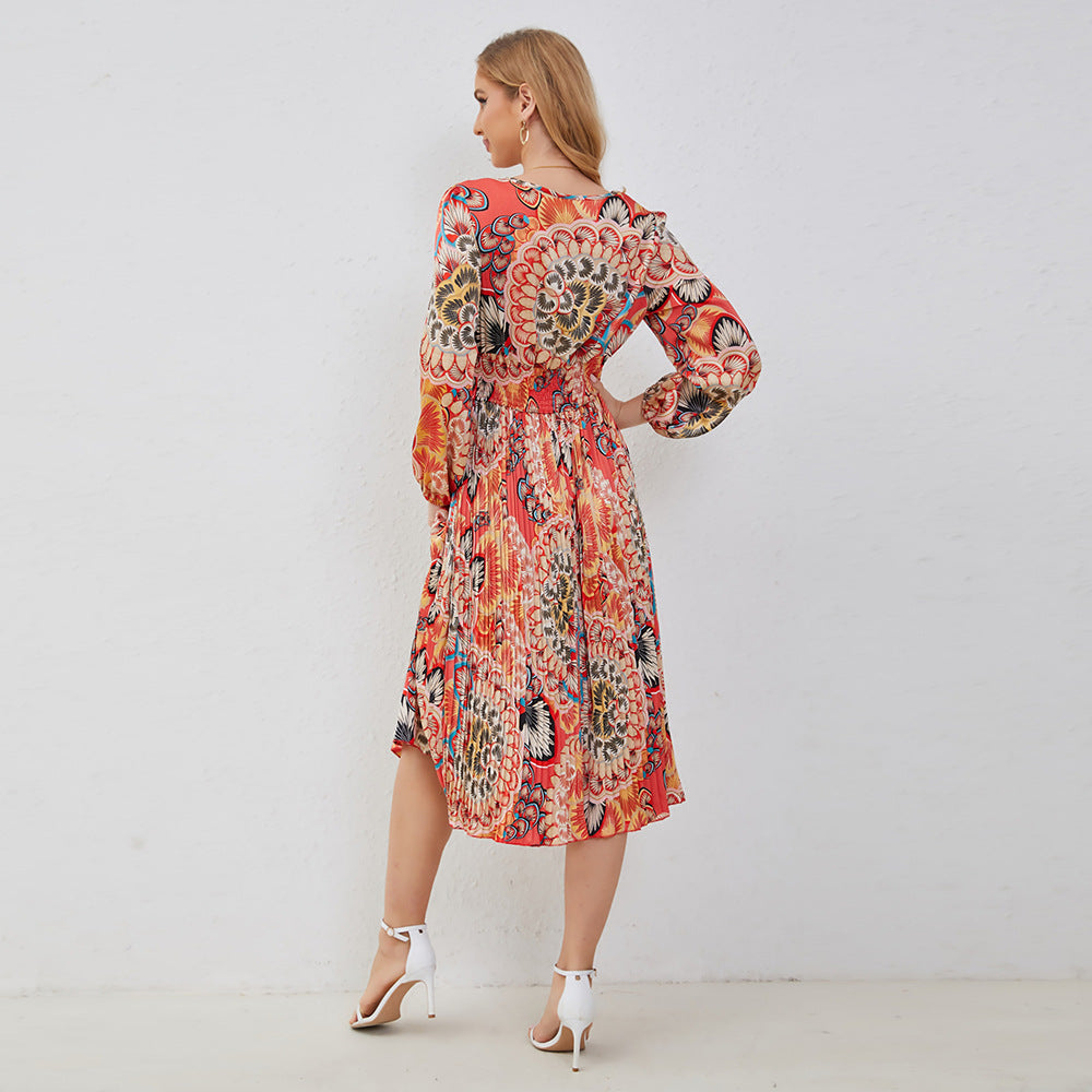 Women's Long Sleeve Midi Dress with Paisley Patterning