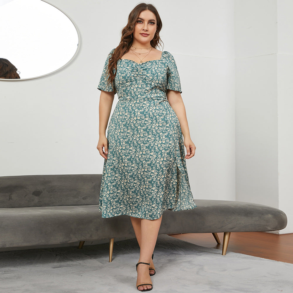 Women's Short Sleeve Midi Dress with Sweetheart Neckline