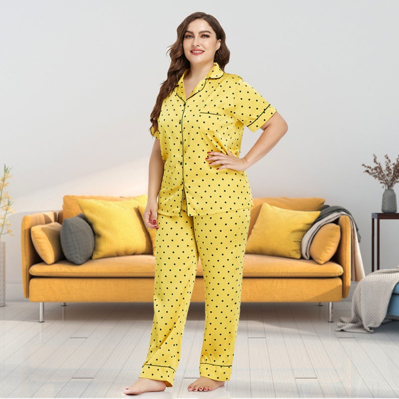 Zweiteiliges Pyjama-Set aus Hemd und Hose mit Polka Dot-Kragen
