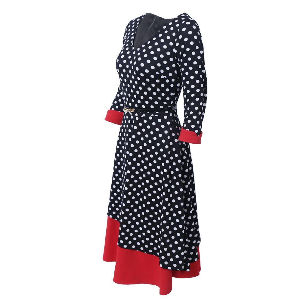 The classic combination of black and white polka dots with solid red details make this Double Layered Polka Dot Dress a timeless choice.