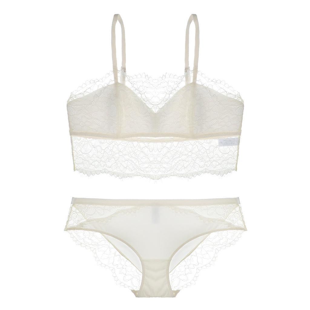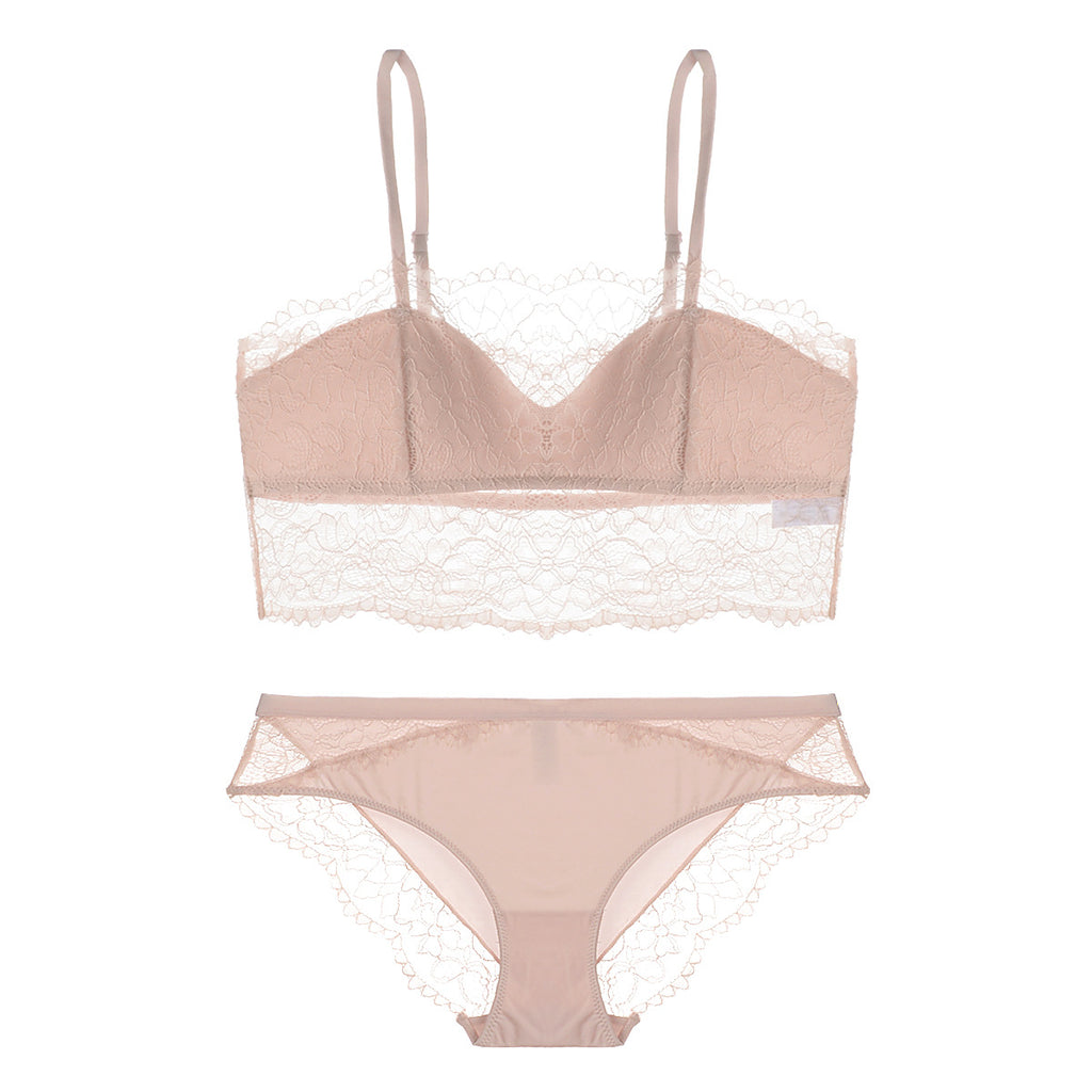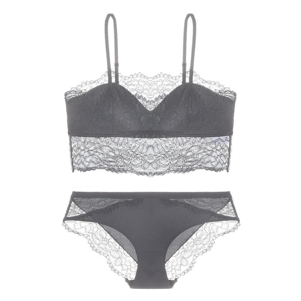 A wide lace-banded bra matches the lacy bottoms of the Fancy lace Bralette Top and Panty Set for a sweet and romantic look ideal for wear any night of the week.