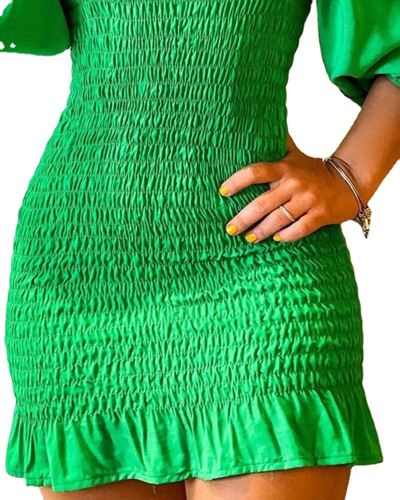 Lime Green Ruched Mini Dress with Loose Fitting Sleeves