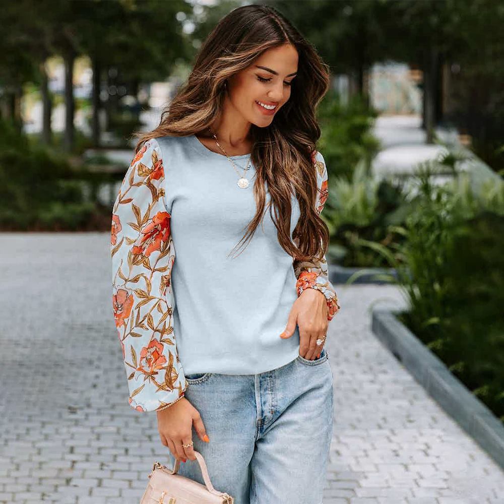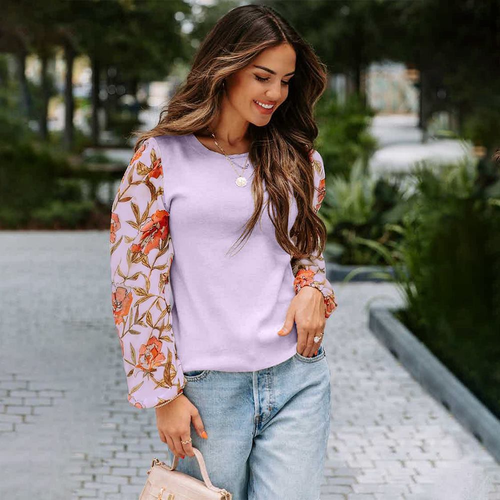 Get the look of floral patterning with the Women's Long Sleeved Shirt with Floral Loose Fitting Sleeves. The shirts stand out with their solid colors accented only by the details on the long sleeves.