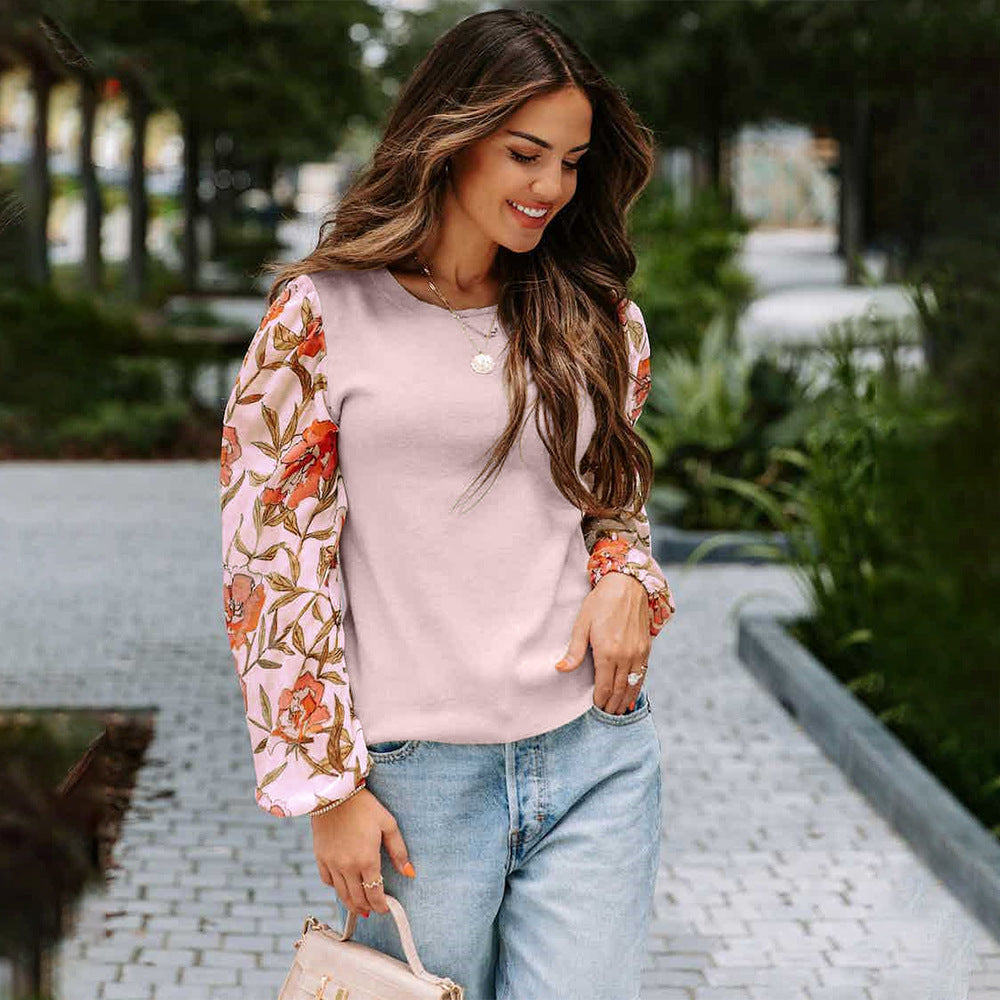 Long Sleeved Shirt with Floral Loose Fitting Sleeves