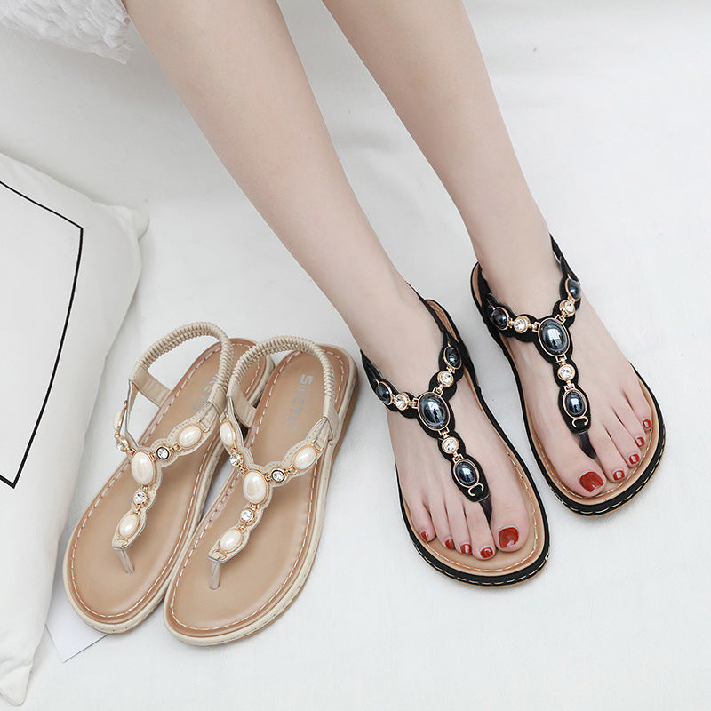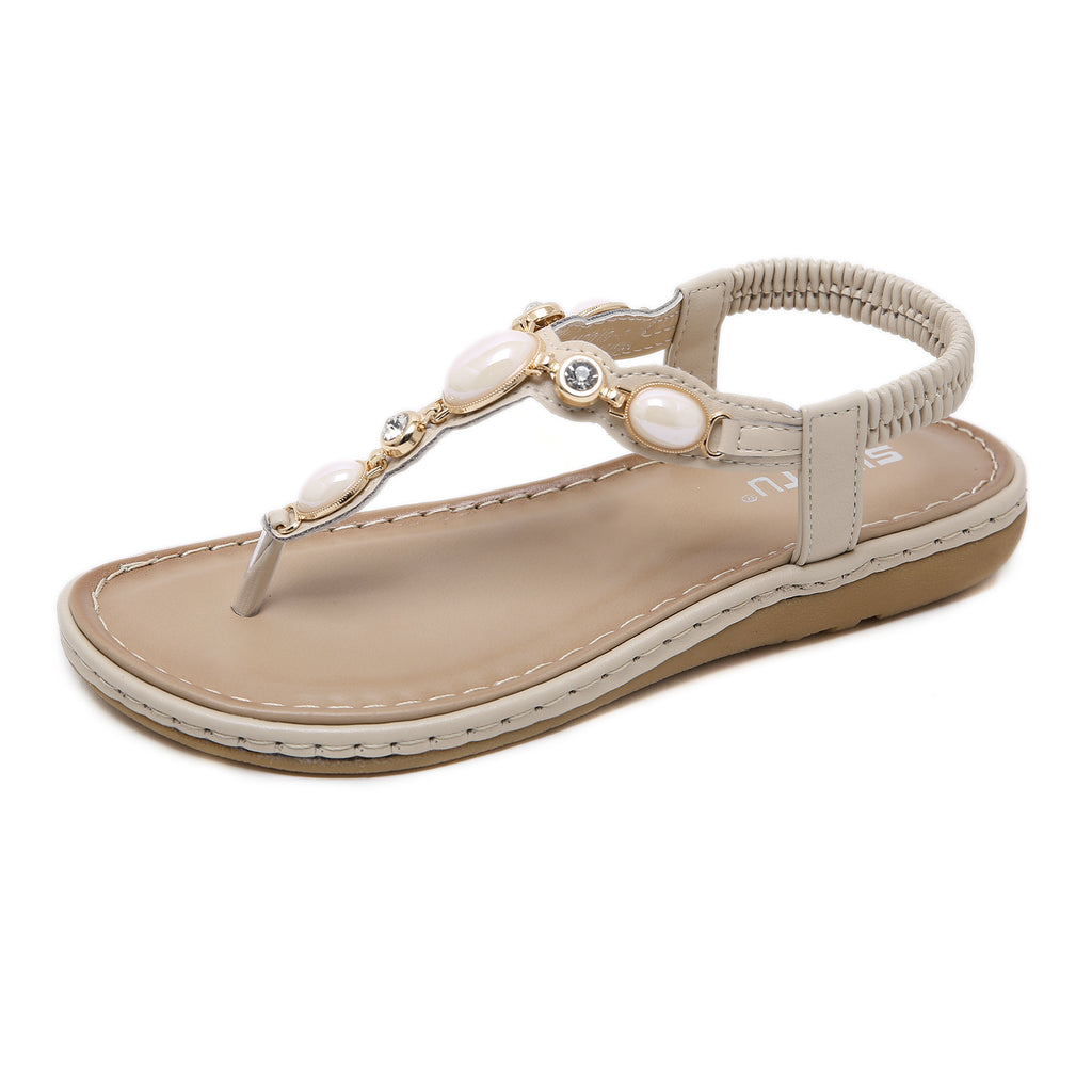 Stretchy Ankle Strap Sandals with Decorative Stitching and Rhinestones