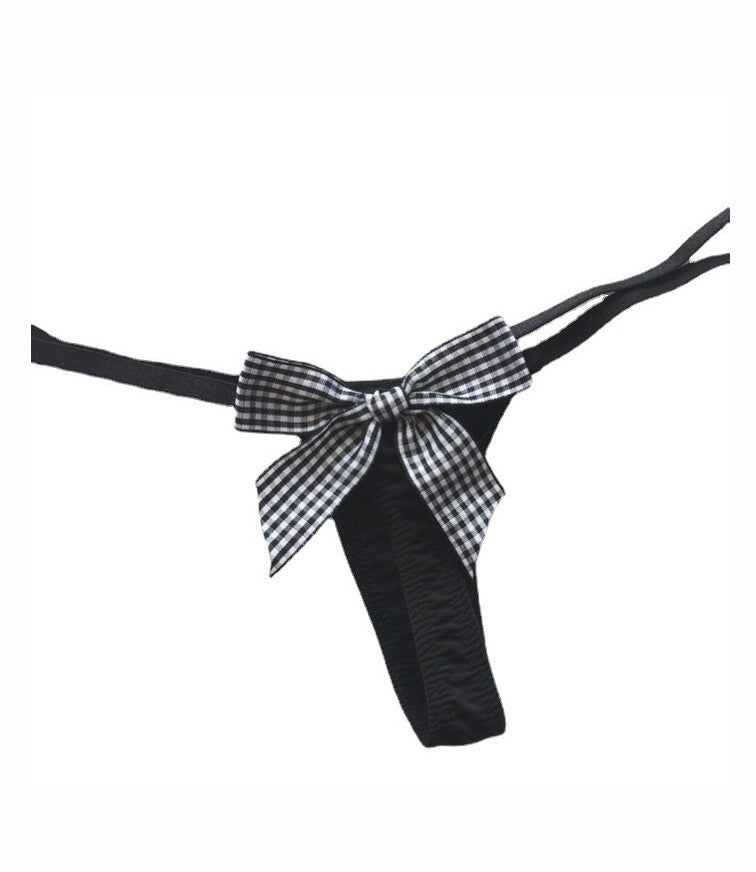 Add an alluring touch with the Women's Thong Underwear with Bow Tie and Strappy Waist that is characterized by the black and white checkerboard bow found along the back of the underwear.