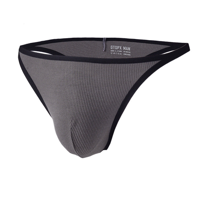 Feel alluring and comfortable wearing the Men's Thong Underwear with Spacious Pouch and Elastic Waistband designed to be as comfy as it is stylish. The thong comes in white or gray with black trim.