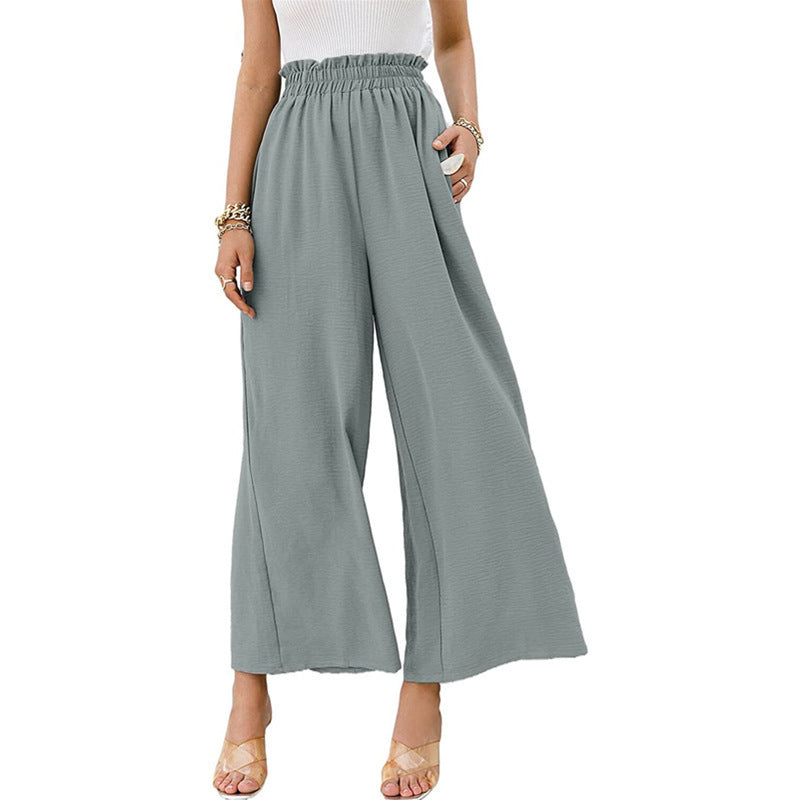 Wide Leg Elastic Waist Ruched Pants