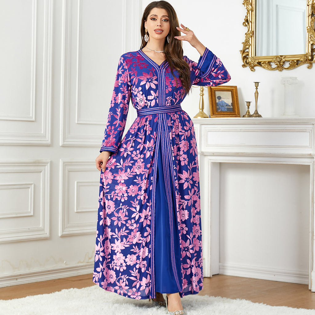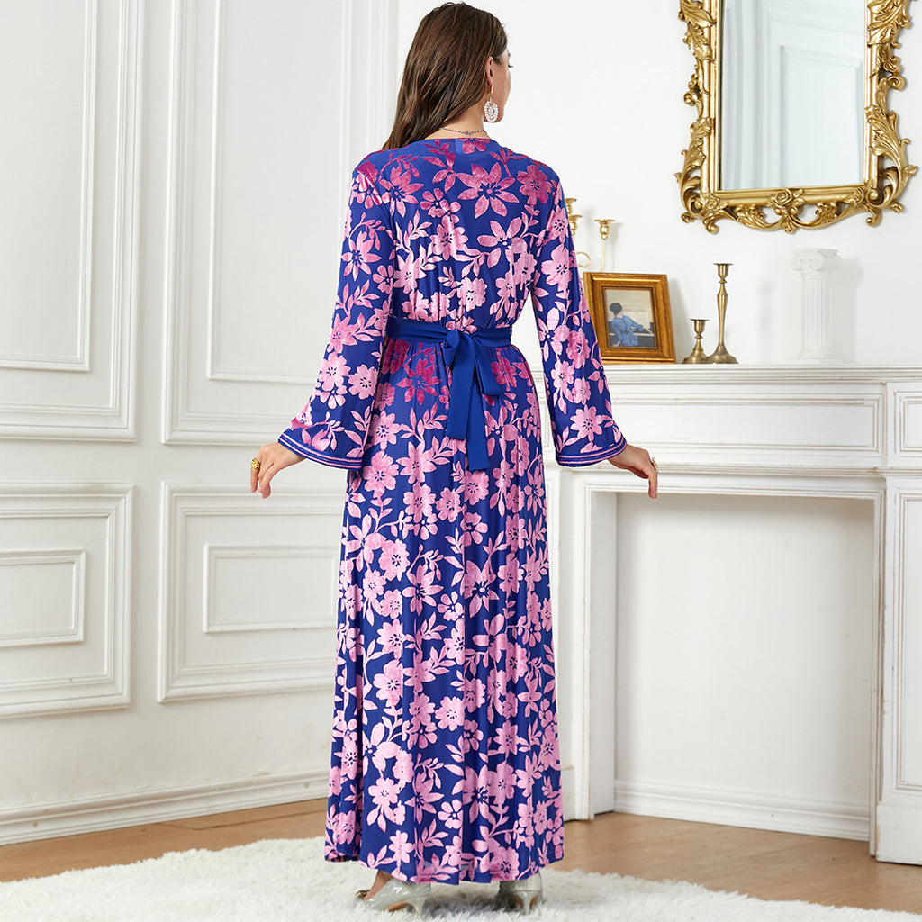 Women's Long Sleeve Floral Print Robe Style Dress