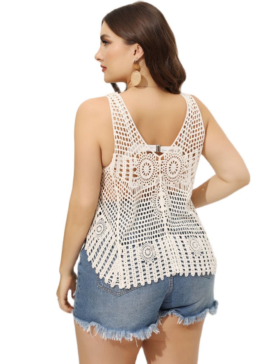 This Women’s Mesh Semi Sheer Lace Patterned Top is a breathable and cute choice for beach days and beyond. It comes in a flattering cream white hue.