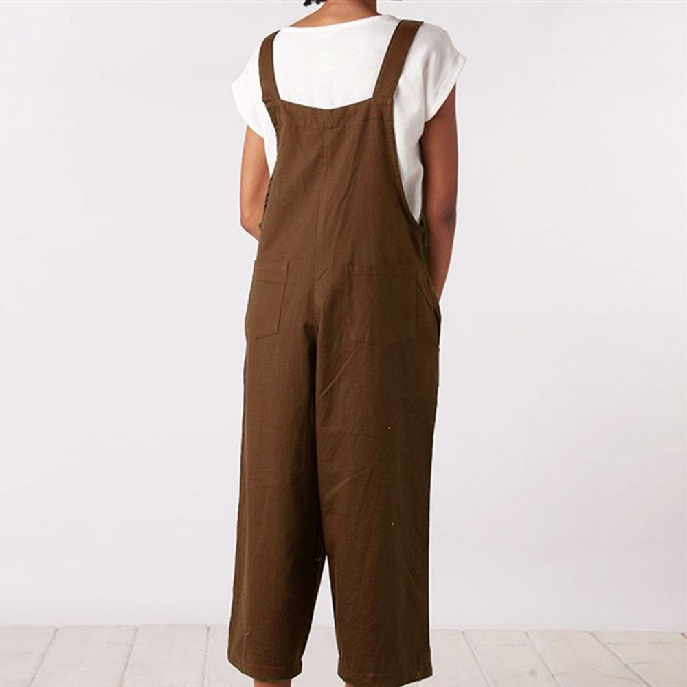 Simple and casual, the Women's Brown Loose Fitting Capri Length Overalls are great for relaxing at home, running errands and beyond. Pair them with any color t-shirt you like.