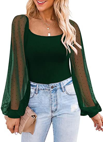 Breezy and cute, these Women's Long Sleeved Sheer Sleeves SquareNeck Tops will keep you feeling cool and looking your best. They feature loose,sheer sleeves and come in a variety of colors.
