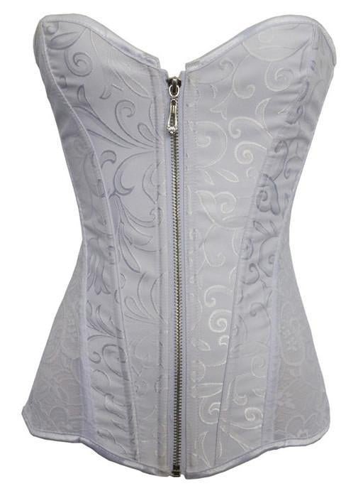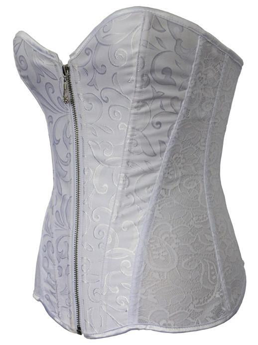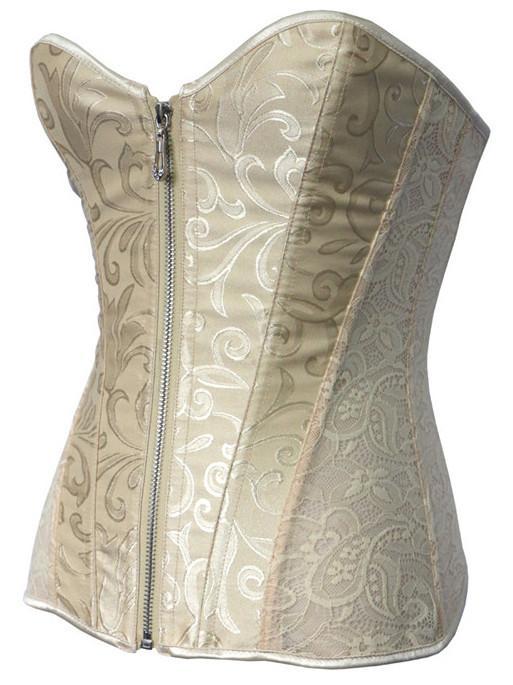 Prettified with lacy panels and smooth panels that mingle to render a fashionably contrasted finish, this zip up corset top is fit for a starlet.